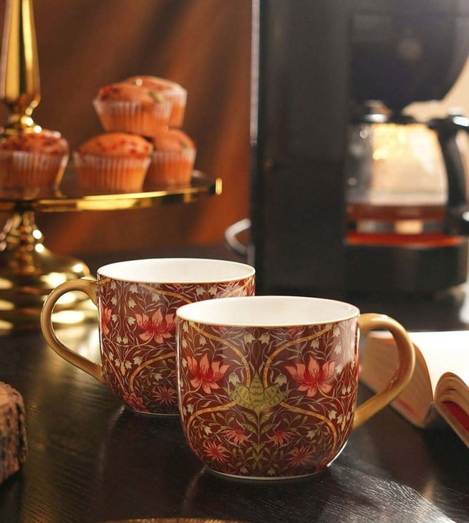 Maroon Bone China Coffee Mugs (350ml) - Set of 2