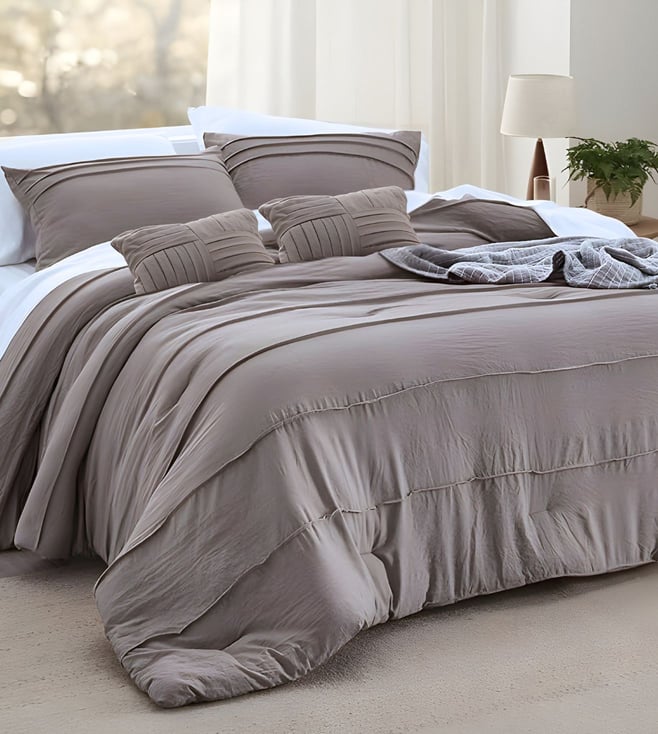 Oats Beige Taupe Stella Cotton Embroidered Duvet Cover with Bedsheet and 2 Pillow Covers