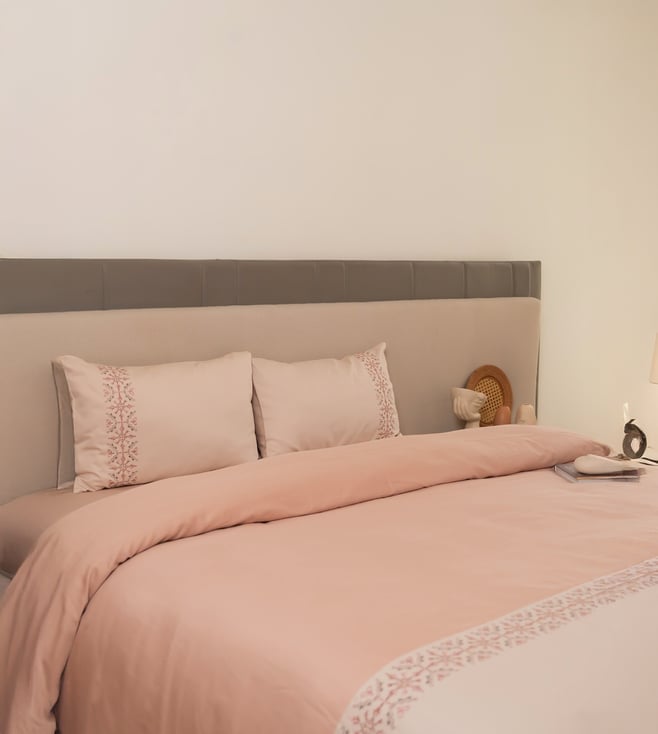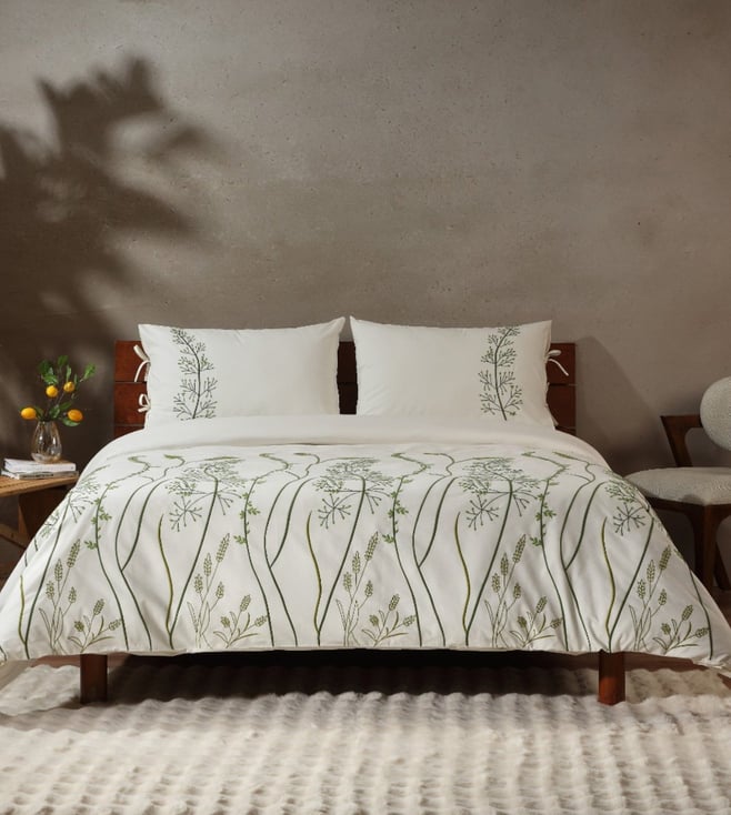 Ivory Organic Cotton Embroidered 200 TC Palma Single Duvet Cover with Pillow Case