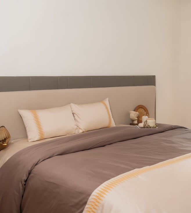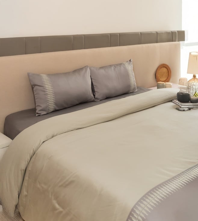 Ivory Organic Cotton Embroidered 200 TC Ethan Single Duvet Cover with Pillow Case