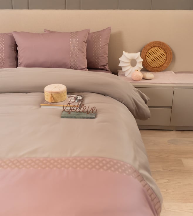Lavender Blush Pure Linen Embroidered Heirloom King Duvet Cover with 2 Pillow Cases