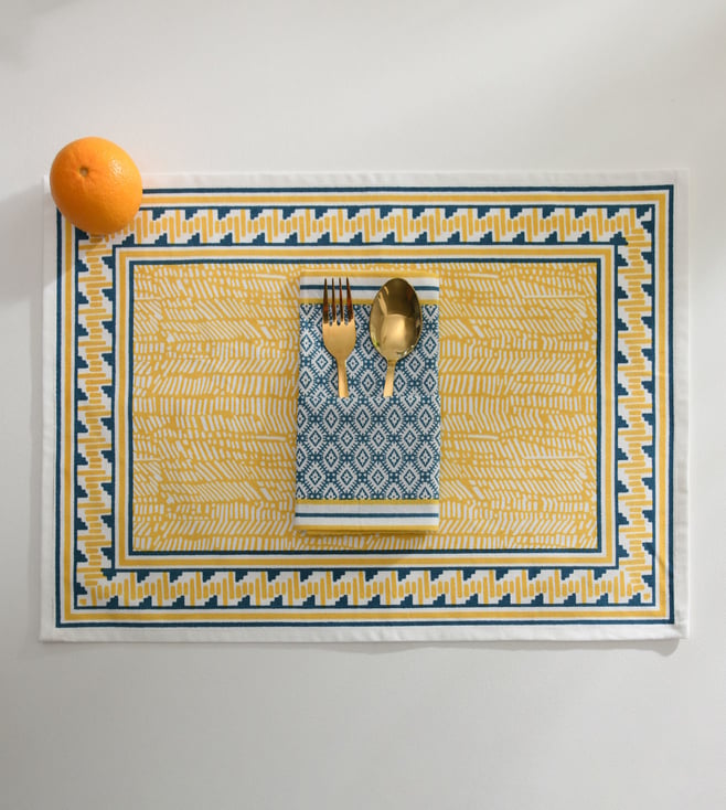 Fragrant Field Cotton Blue Table Mat - Set Of 4