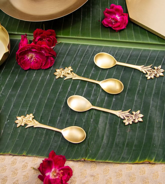 Antique Gold Brass Classic Parijat Spoons - Set of 2