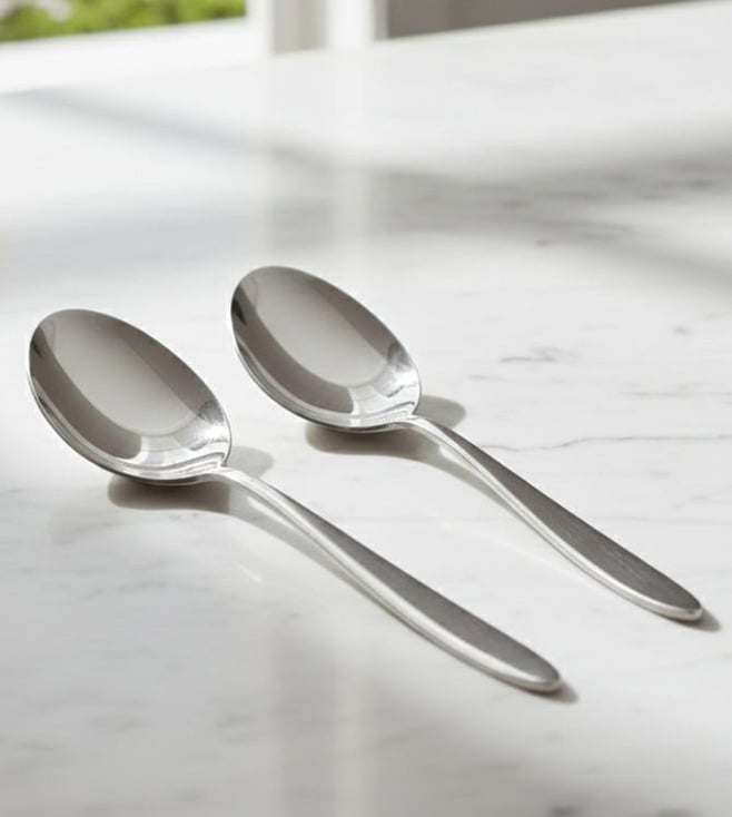 2-Piece Silver Stainless Steel Serving Spoon Set