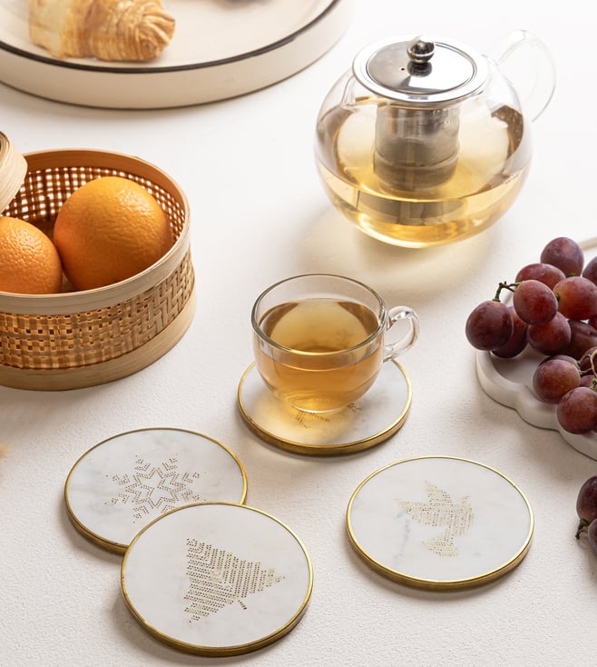 Marble Coasters Brass Ring White - Christmas Theme