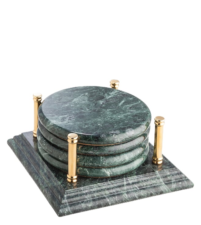 Turquoise Agate Coaster Golden Gilded (Set Of 4)