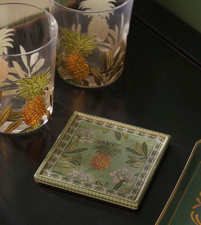 Green Aventurine Coaster with Golden Gilded (Set of 4)