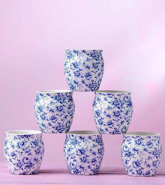 Neelambar Floral Ceramic Kulhad Set of 6 pcs