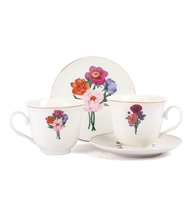 Multicolour Porcelain Printed Secret Garden Tea Cup with Saucer - Set of 12
