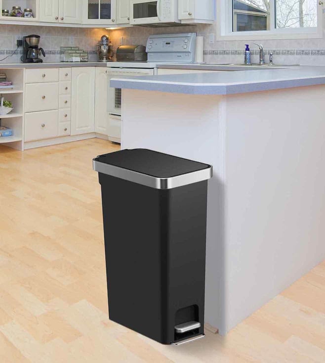 Black Plastic Step Dustbin with Fingerprint Resistant (40 L)