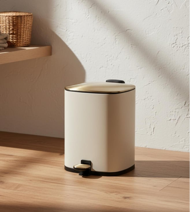 Merlowe Circular Dustbin - Beige (6L) (Set Of 1)