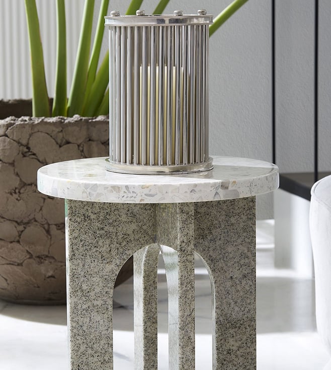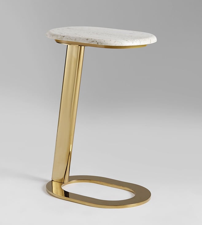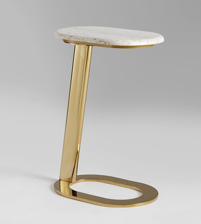 White, Beige And Gold Travertine Marble And Stainless Steel C-Shaped Peg Table
