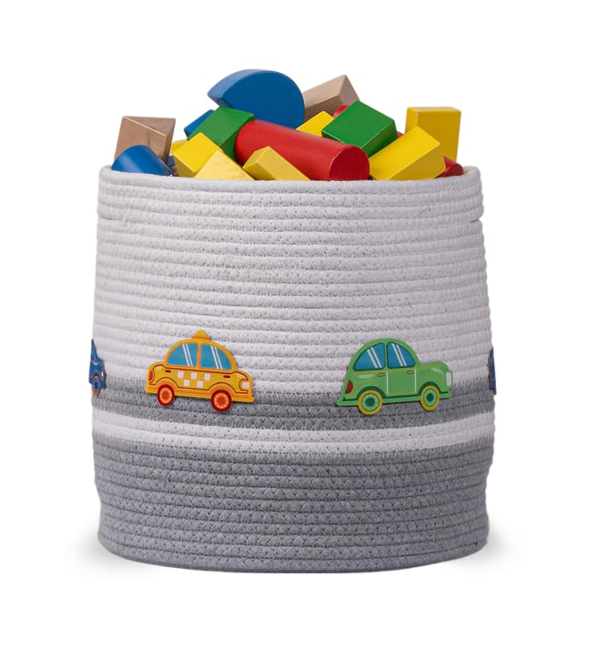 Cotton Rope Transport Trail Small Round Grey Toy Storage Basket with lid