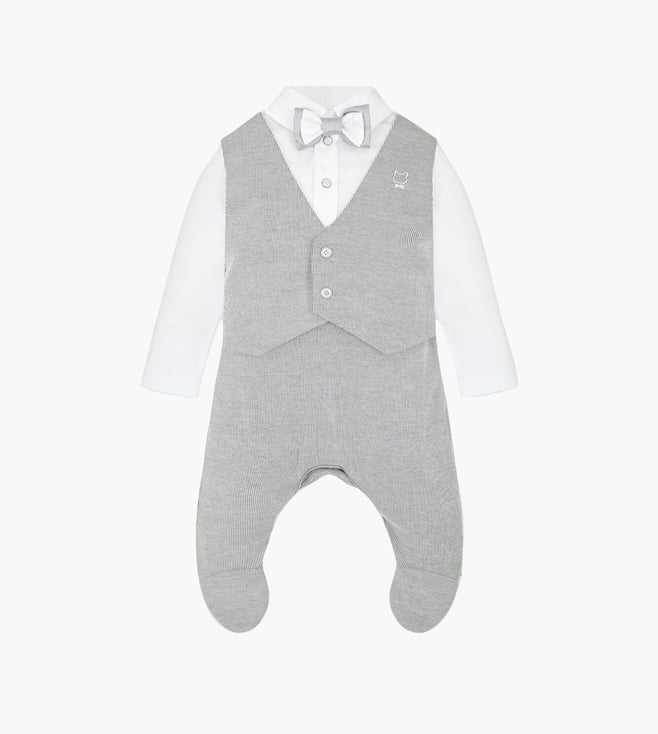 Baby Boys Grey Logo Printed Fitted Romper Set