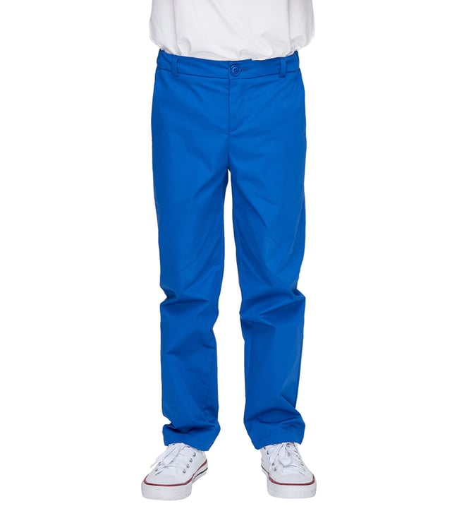 Boys Cornflower Blue Regular Length MId Rise Regular Fit Flat Front Trouser