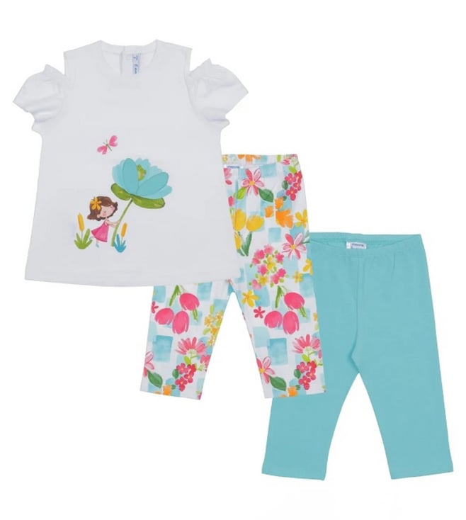 Kids White Mermaid & Sea Animals Printed Shorts Set