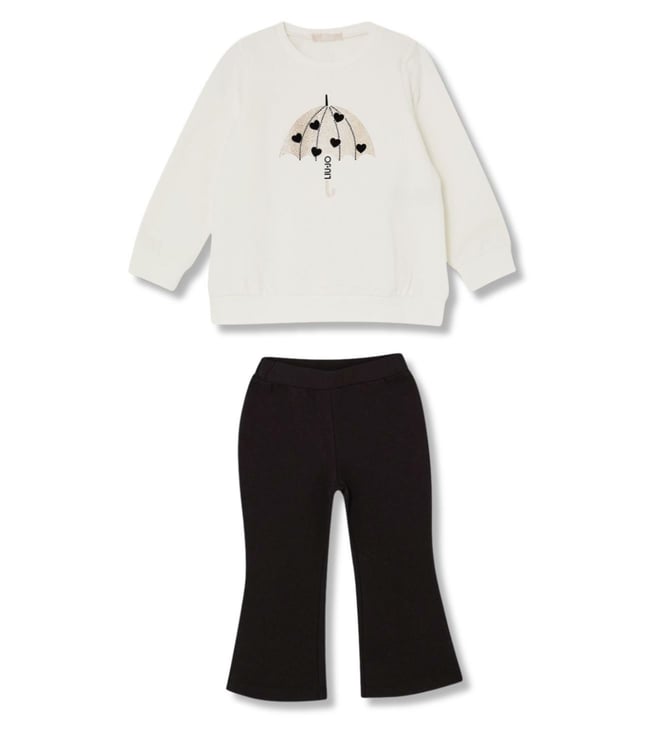 Kids White Teddy Printed 2Pc Leggings Set