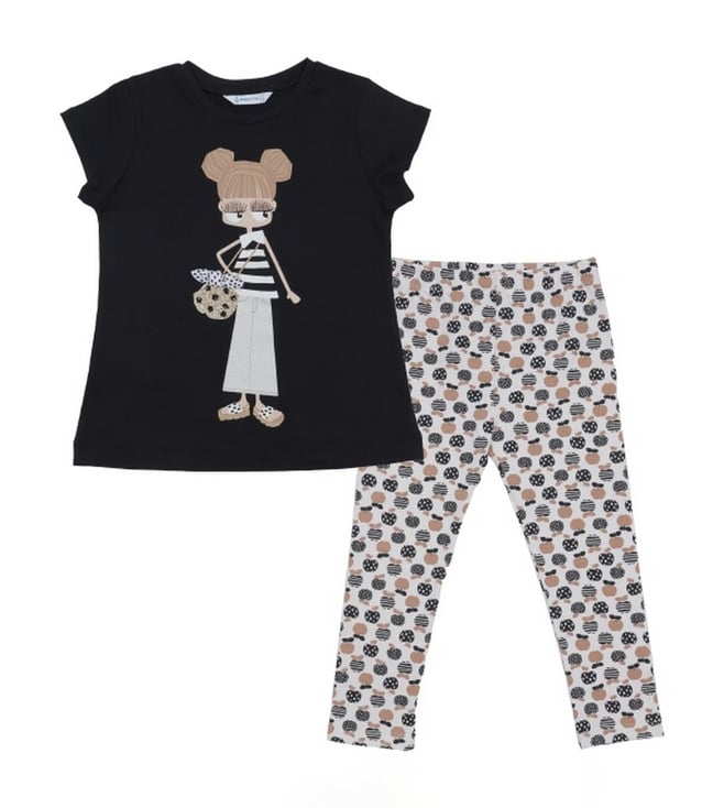 Kids Black Girl With Basket Printed Leggings Set