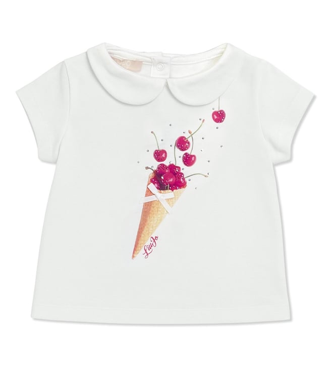 Baby Girls White Rhinestones Graphic Comfort Fit T-Shirt