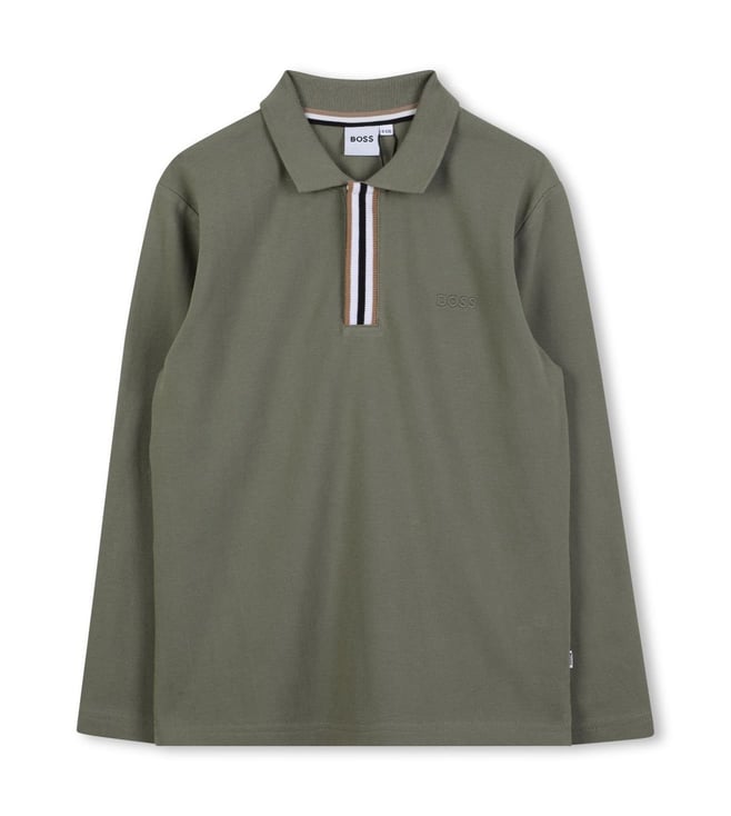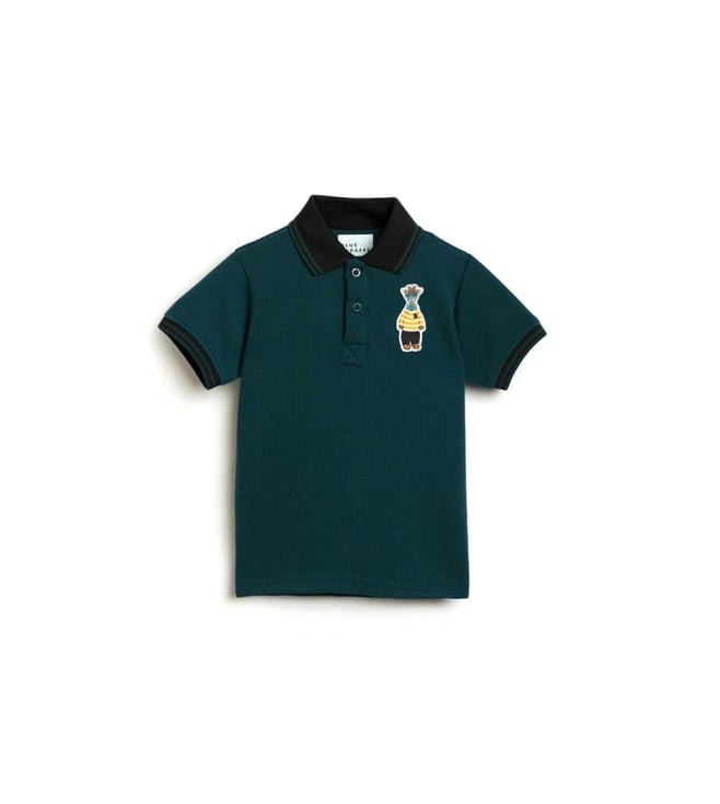 Boys Green Regular Fit Knitted Polo T-Shirt