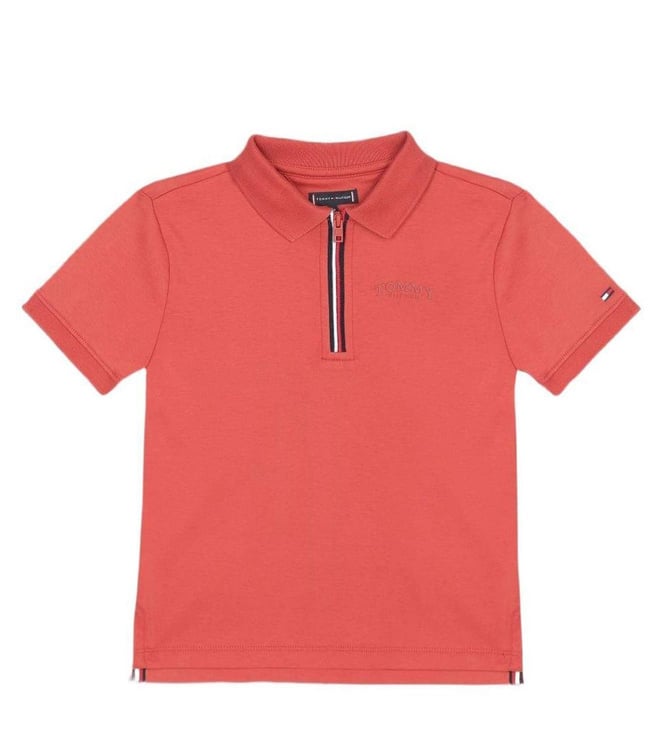 Red Cotton Regular Fit Striped Polo T-Shirt
