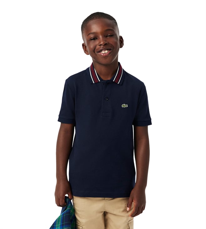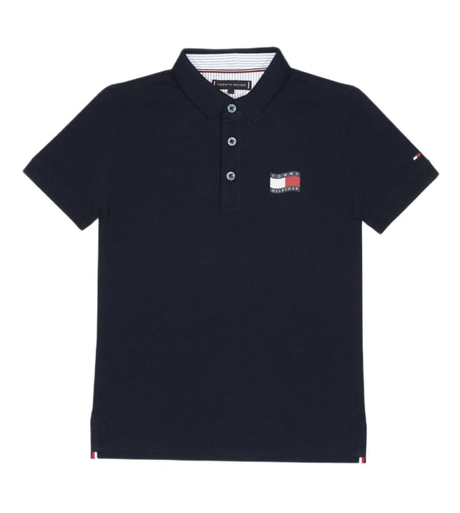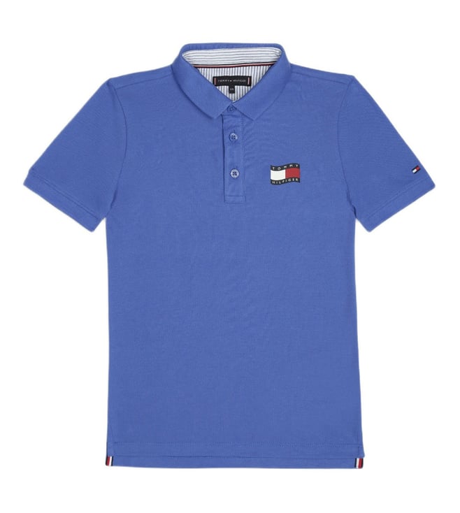 Boys Evening Blue Regular Fit Solid Polo T-Shirt