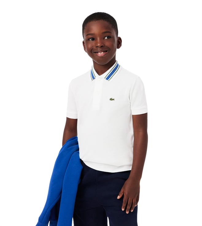 Boys White Petit Pique Regular Fit Polo T-Shirt