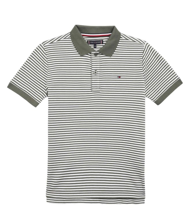 Olive Cotton Regular Fit Striped Polo T-Shirt