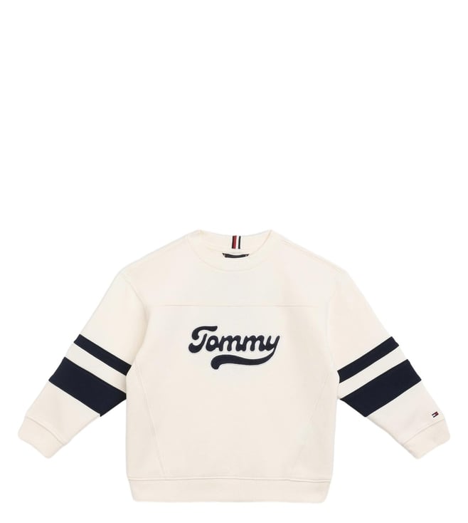 Off White Cotton Relaxed Fit Logo Printed Sweater