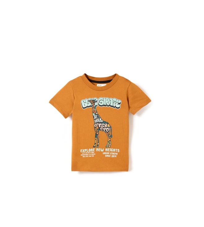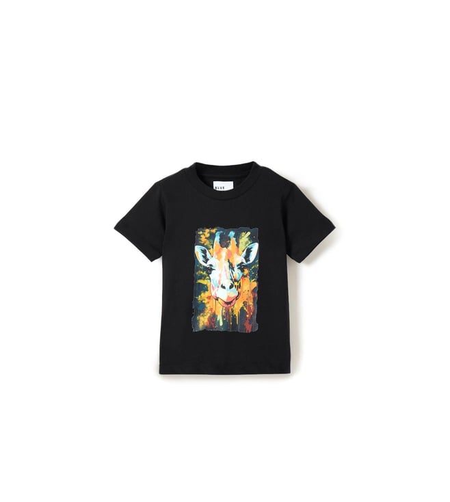 Kids Black Printed Cotton Regular Fit T-Shirt