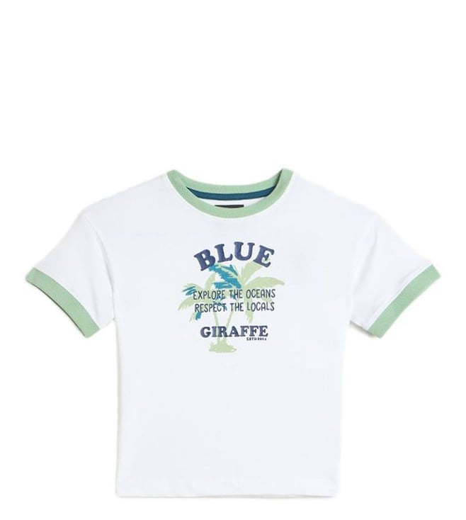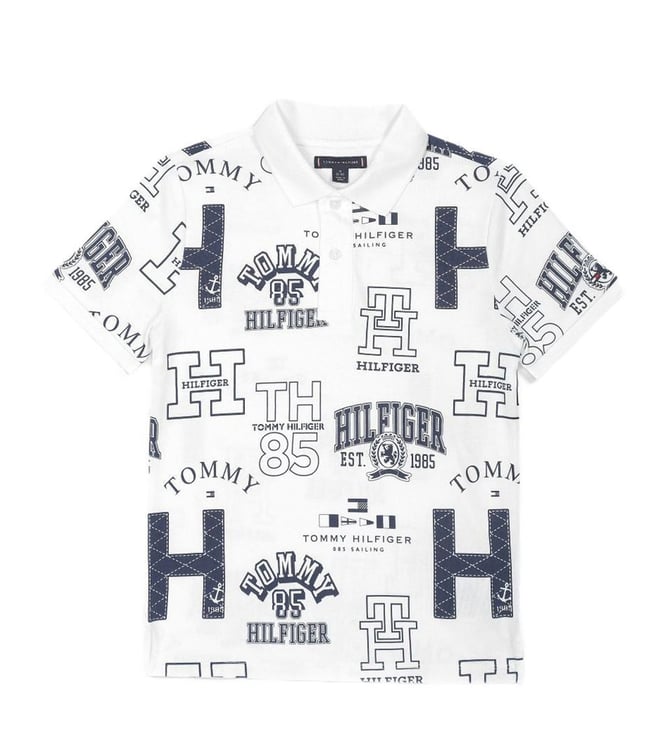 Boys White Graphic Print Regular Fit Polo T-Shirt