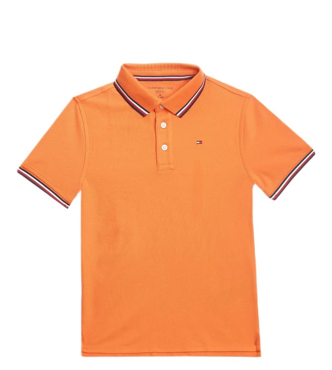 Boys Red Logo Printed Regular Fit Polo T-Shirt
