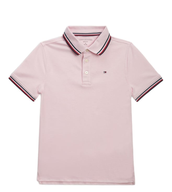 Kids Red Cotton Regular Fit Logo Printed Polo T-Shirt