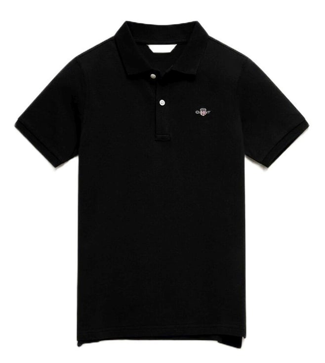 Kids Red Cotton Regular Fit Logo Printed Polo T-Shirt