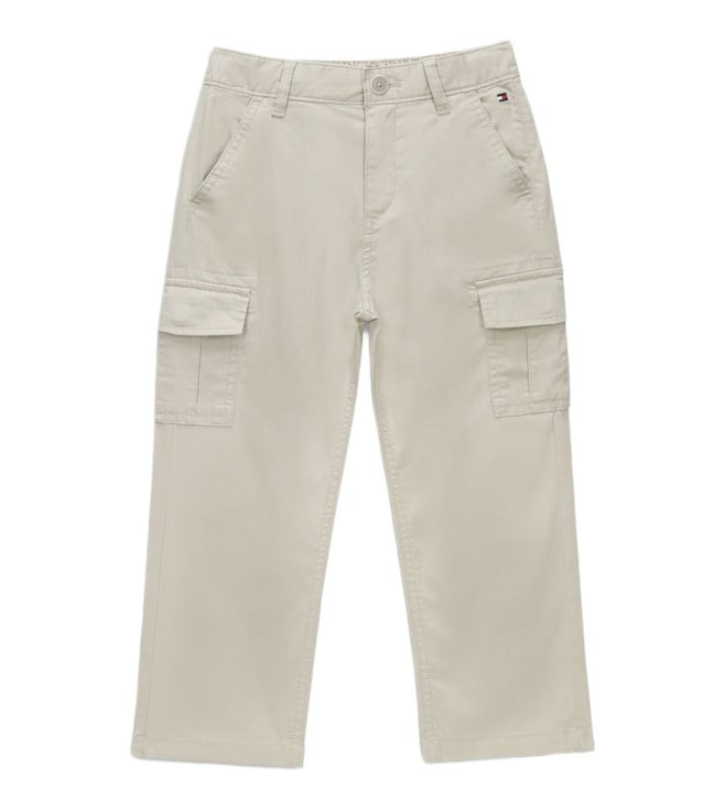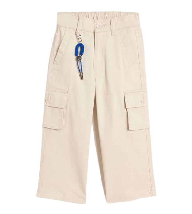 Boys Off White Relaxed Fit Mid Rise Cargo