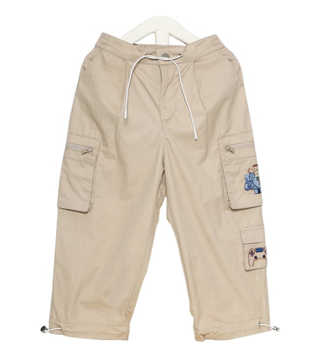 Boys Off White Relaxed Fit Mid Rise Cargo
