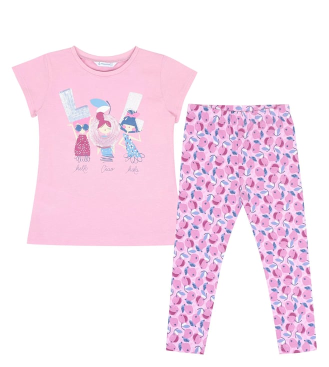 Kids Lilac Sequins Regular Fit T-Shirt & Leggings Set