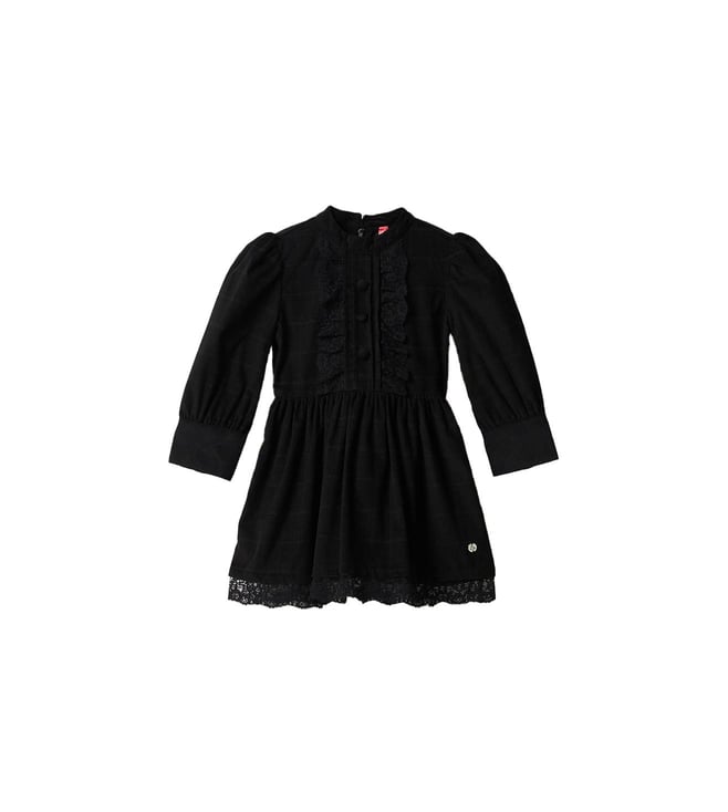 Black Fashion Rebellion Embroidered Mesh Branded Regular Fit Dress