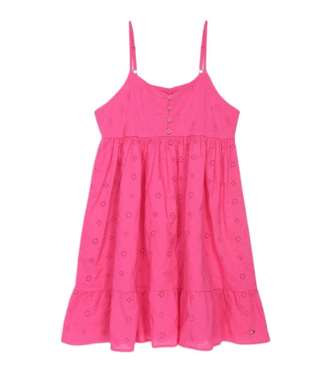 Girls Pink Embroidered Regular Fit A-Line Dress