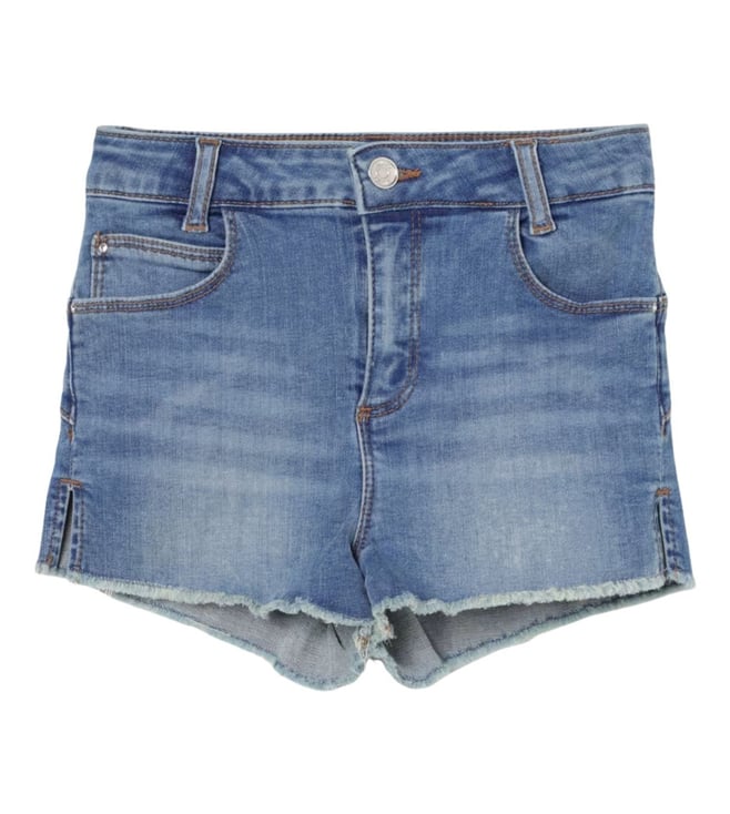 Girls Blue Regular Fit Mid Rise Shorts