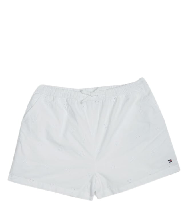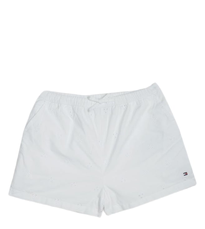 Girls White Cut Work Regular Fit Mid Rise Shorts
