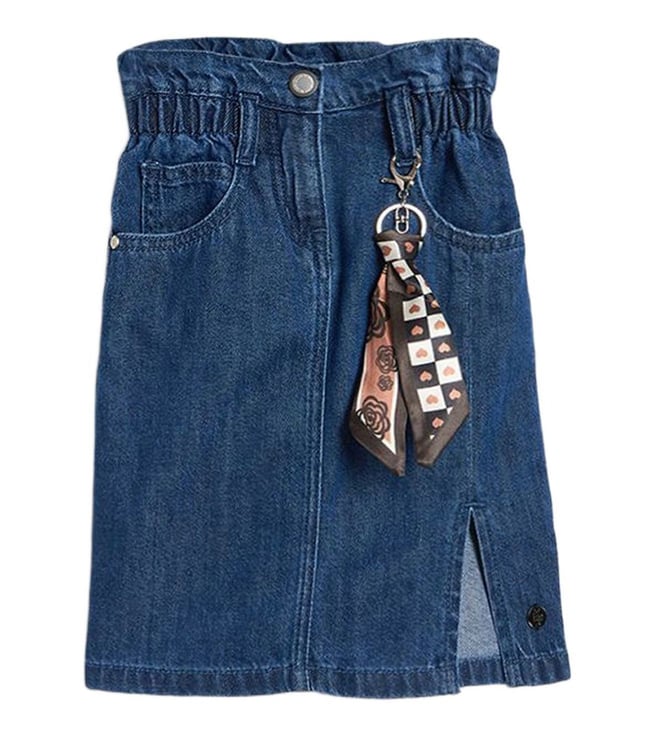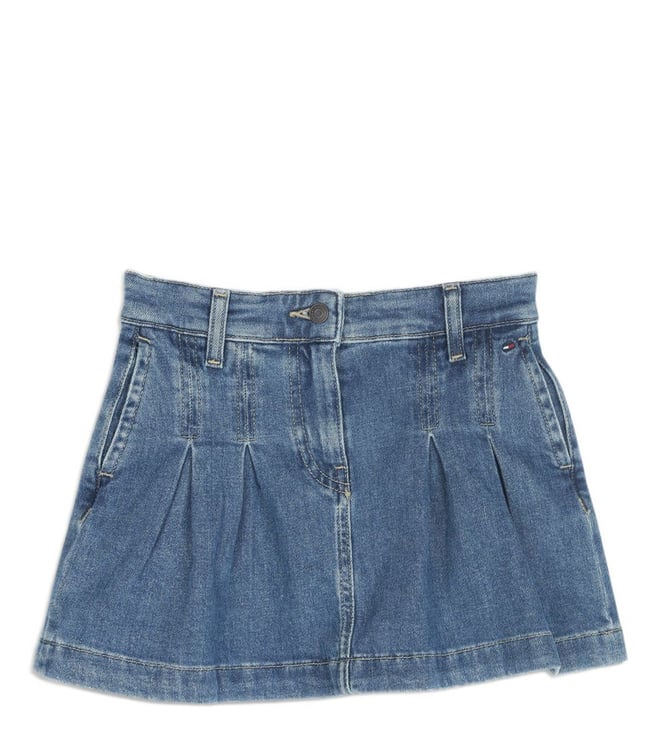 Girls Blue Flared Fit Mid Rise Skirts