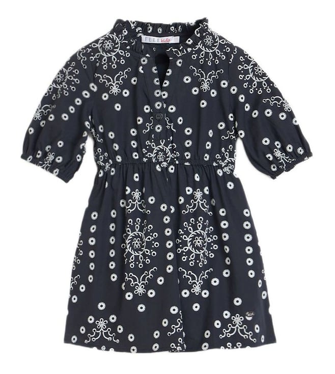 Girls White Printed Regular Fit A-Line Dress