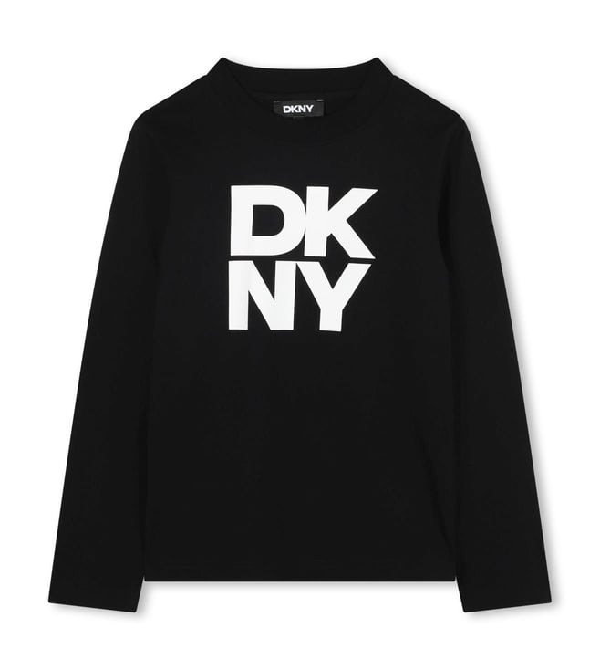 Kids Black Printed Cotton Regular Fit T-Shirt