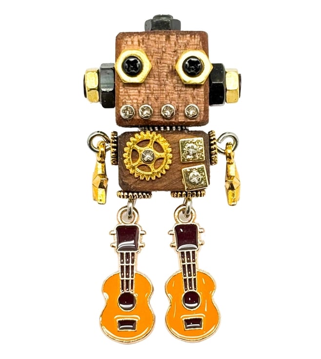 Brown & Gold Textured Guitar Robot Lapel Pin