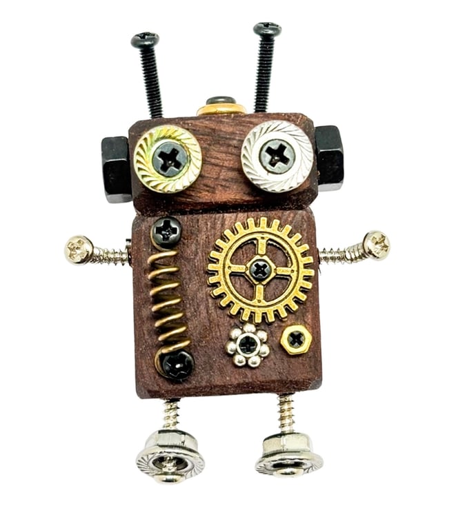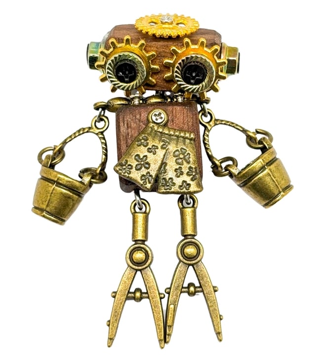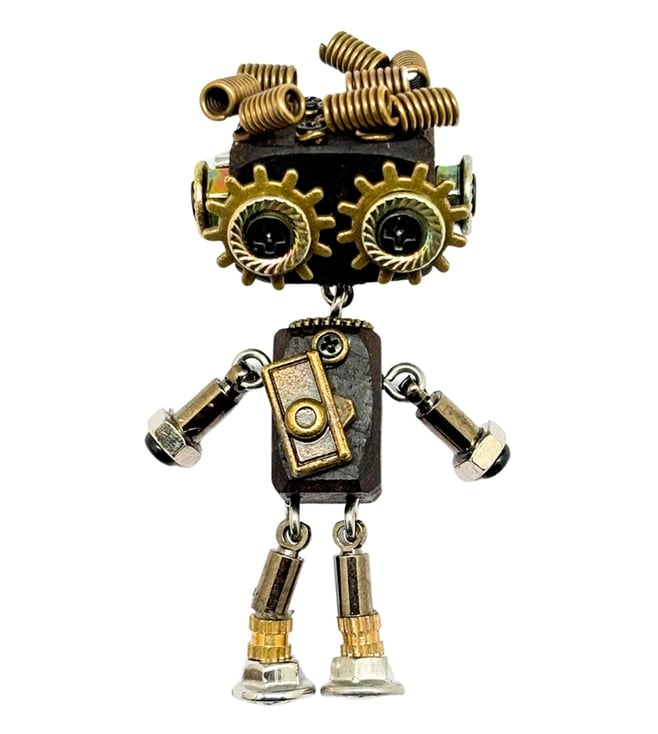 Brown & Gold Textured Steampunk Robot Lapel Pin