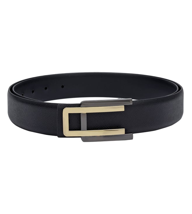 Black Aop & Matte Gunmetal Self Design Classic Leather Formal Belt