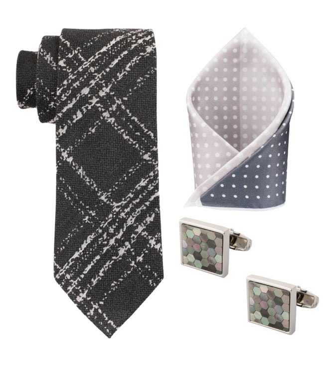 Black Premium Printed Necktie Pocket Square and Cufflinks Gift Set