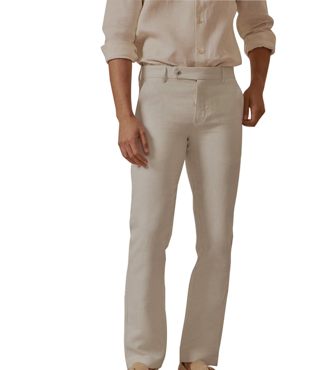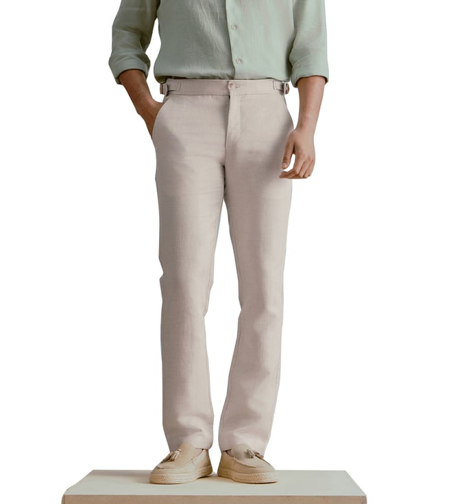 Men Beige Solid Pure Cotton Straight Trouser
