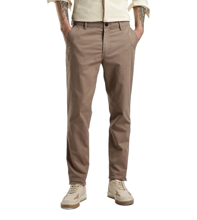 Taupe Gray Mid rise Solid Slim Fit Pant